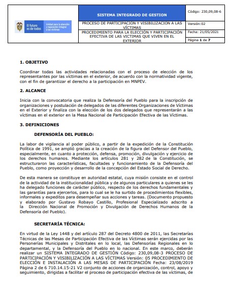 Procedimiento para la Elección y Participación Efectiva de las Víctimas que Viven en el Exterior
