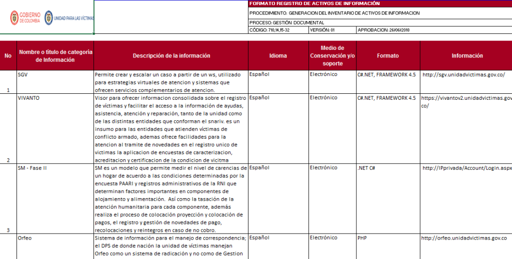Registro de activos de información – 26/12/2018